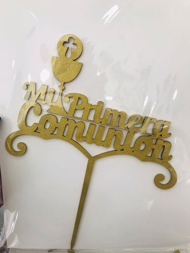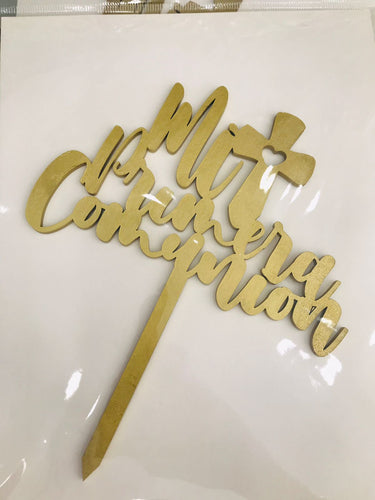 Cake Topper Dorado Mi Primera Comunion Cruz